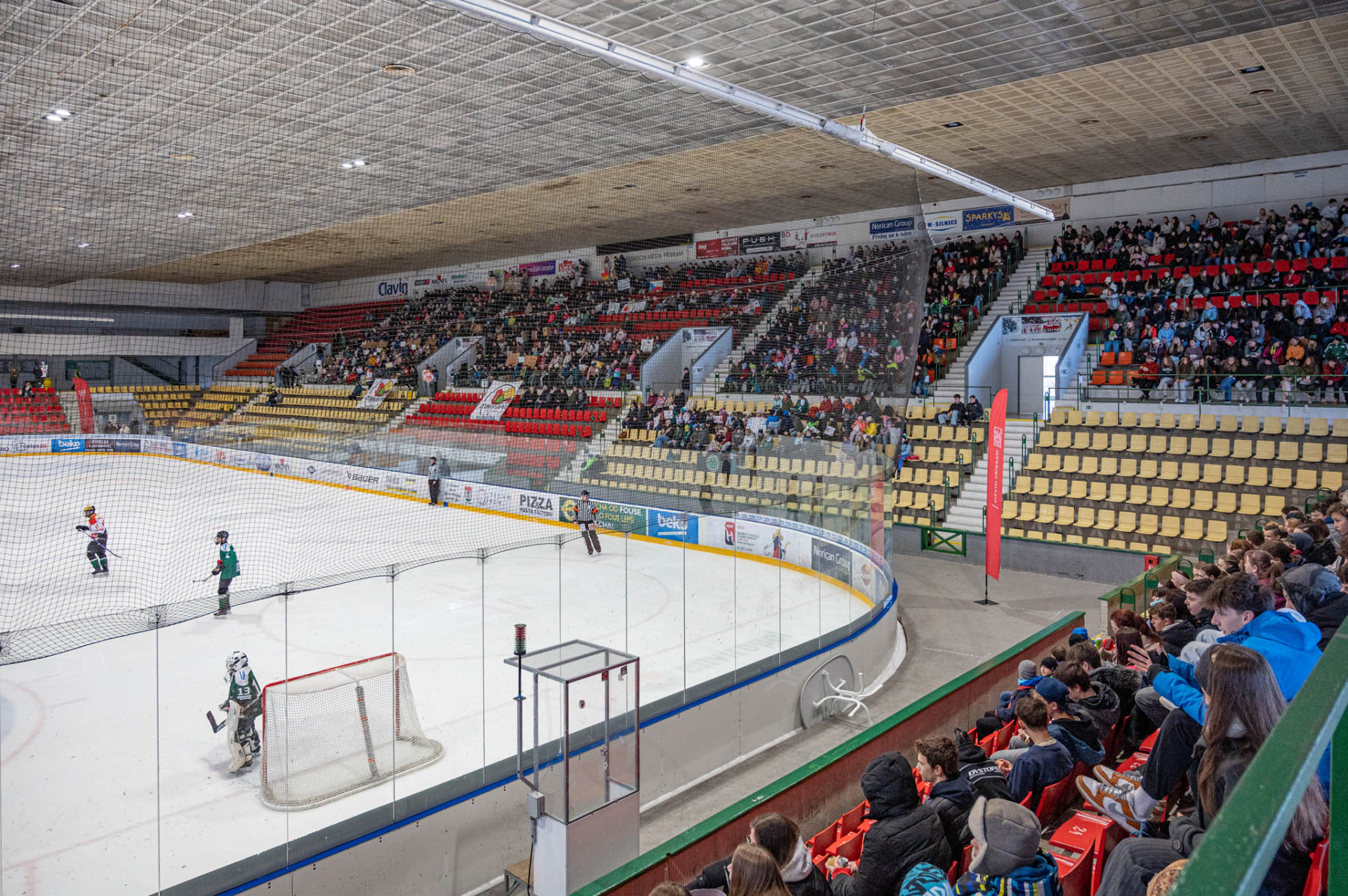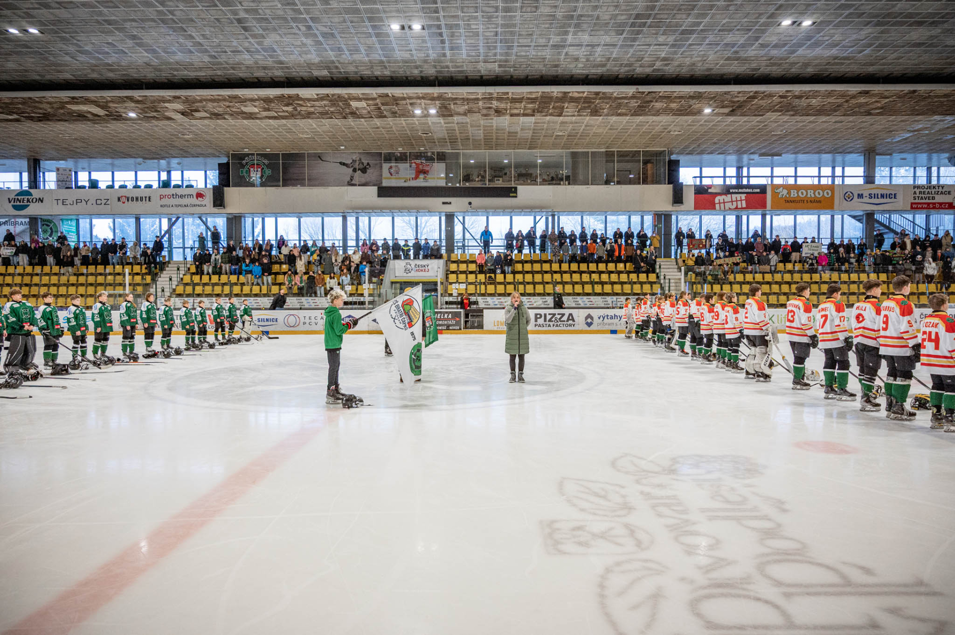 Bohatý doprovodný program vyplnil také přestávky mezi třetinami. Diváci mohli sledovat vystoupení Bruslařského klubu Příbram, zatímco druhá přestávka patřila napínavé dovednostní soutěži v rychlobruslení, ve které zvítězil výběr „Svět“.
